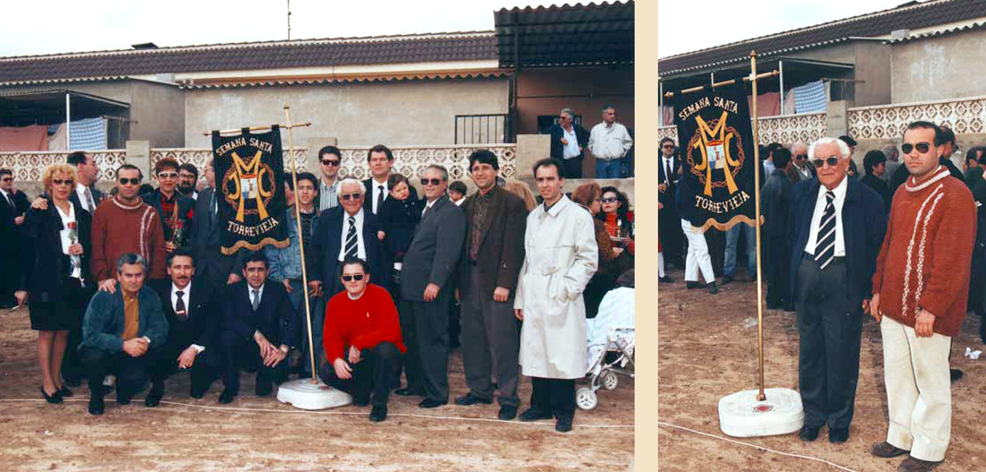 La primera piedra fue colocada, como buscando las raíces de la Semana Santa entre la tierra, por el alcalde de Torrevieja, don Pedro Ángel Hernández Mateo, junto al presidente de la Junta Mayor de Cofradías, don Ramón Bernabé Velasco, y el párroco de la Inmaculada, don José Antonio Moya Grau. En una caja de plomo, cerrada por soldadura a la vista de todos los presentes, se introdujeron: monedas de curso legal, diarios provinciales, el semanario «Vista Alegre», el último programa de la Semana Santa y pergaminos con los nombres de los componentes de la corporación municipal, de la Junta Mayor y sus diferente directivas desde su fundación.
